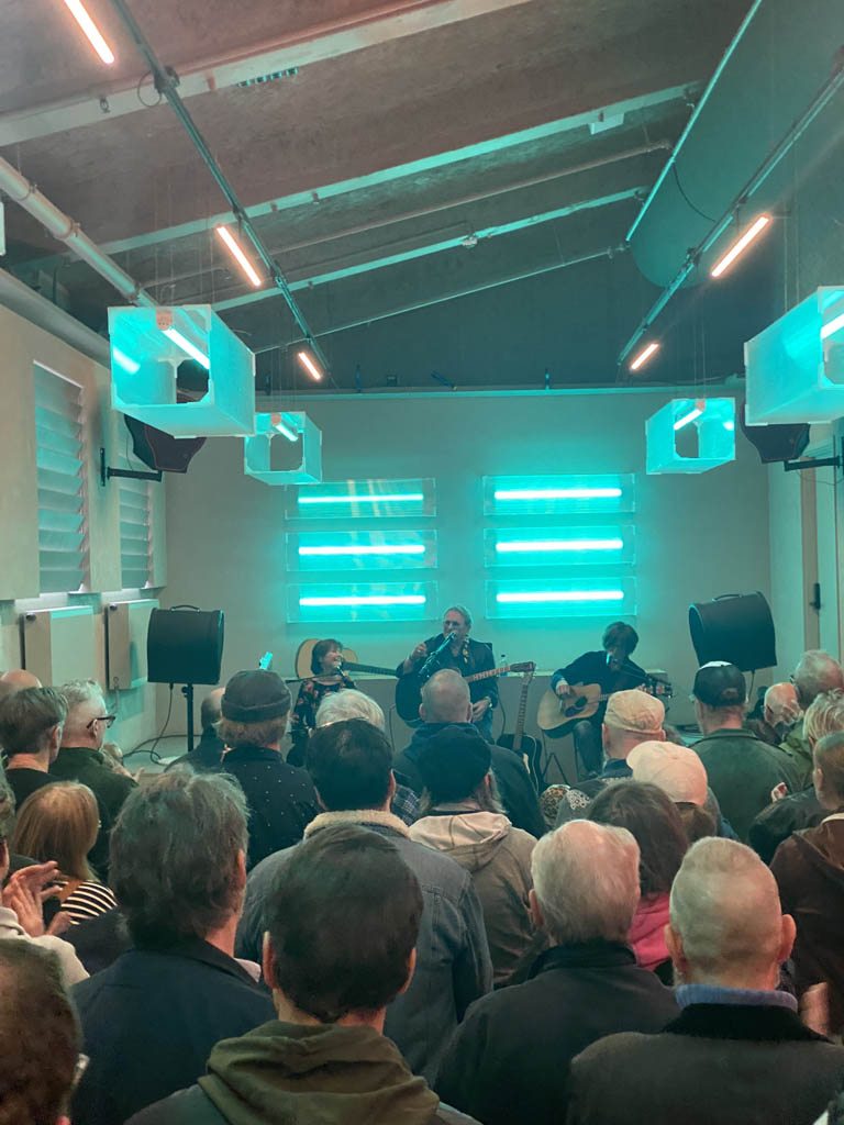 Bröderna Åhden från Umeå museet Guitars till höger. Kenneth Fors Strawberry studio vänster.